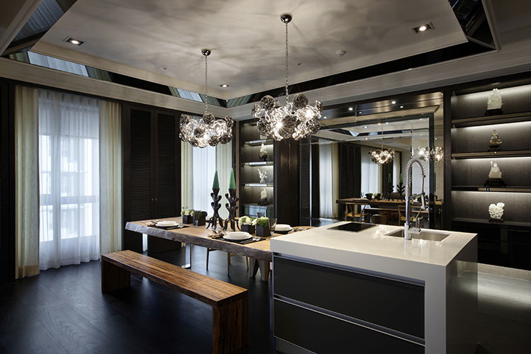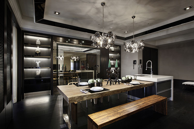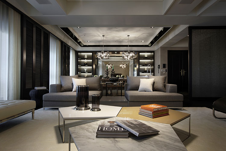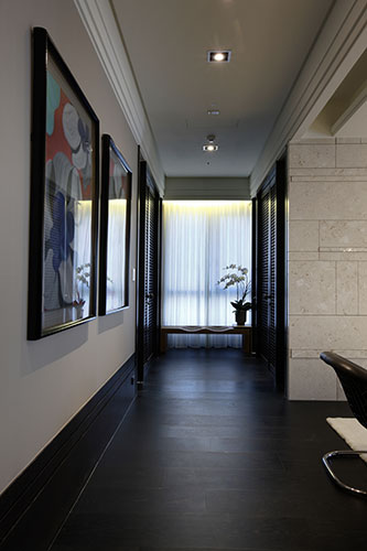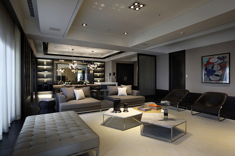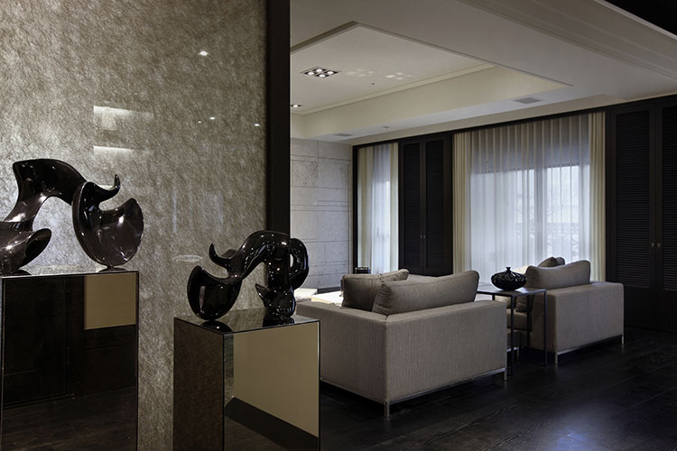 以精品渡假飯店的概念作為此住宅的設計主軸,抽掉了華麗璀燦的面向,留蓄了時尚的休閒風味與低調的貴氣質感,以黑、白、灰為空間主色調,相佐以暖色系的綴點,讓休閒質感的精華之處,突躍而出,並在細部來回擺渡,遊走於奢華與隱晦的切確刻度。