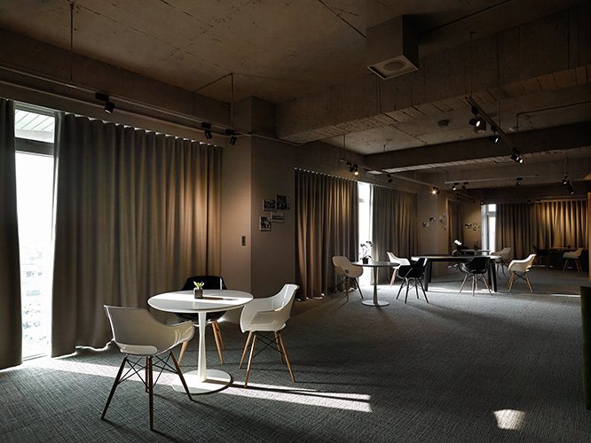 此案目的在創造讓客戶放鬆、休閒的空間。能夠在此空間遇見簡單的美好,可能是一本書、一盆花、一件藝術品、一種環境的氛圍。減少過度的裝修,突顯藝術品、家具的呈現。以女性主題打造的空間,除了有髮廊、也可一起做舒壓按摩,讓身、心靈可以徹底放鬆。也有美食可以享用。