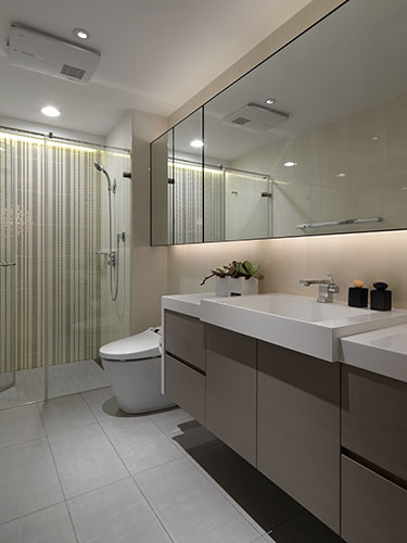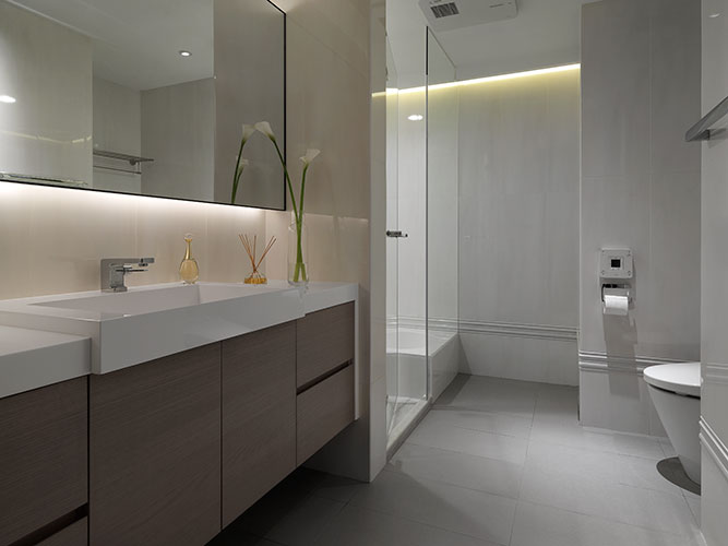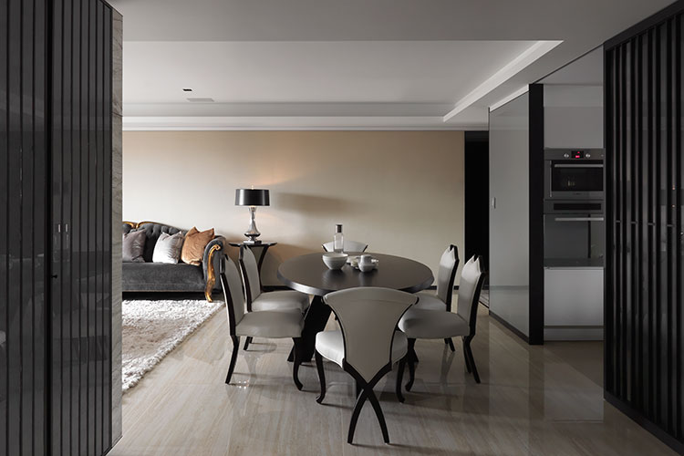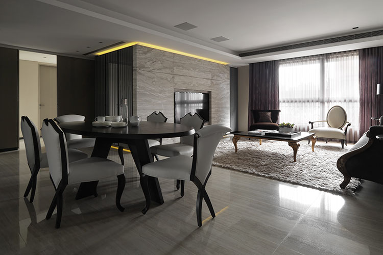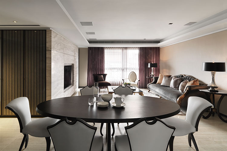 舒適空間來自於場域之間景與景的連貫性,對於客廳沙發與餐廳桌子選以源自於同一個國外設計師品牌,雖外觀有所差異,細節處依能見同宗線條;另外主卧房衛浴牆面點綴著優雅線板花,牽引出起居空間的典雅個性…,甚至客用衛浴也揉入些許的客廳元素。這種方式讓各個空間可以享有自我風格,但因均配合著整體概念,彼此的關系又不至於過於疏遠,當屋主穿梭於其中,不會在感官上產生的過大差異。藉由這種依照所需串連調配機能,卻又適當保有屋主各自生活習慣與個性的設計手法,不僅成就出居住者夢想與機能並駕的生活,也能為空間帶來富饒的生命靈魂。