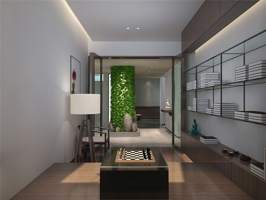 折疊門的運用使空間與中庭連通起來,視野開闊,空氣流通;公共性與私密性靈活享用;下棋,品茶,打坐,睡眠和閱讀——可變動的需要,因沉穩的木色而平靜下來,禪意悠然而生。