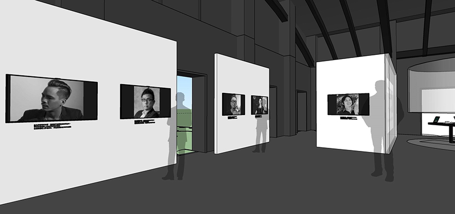 現代人習慣用影像探索他人日常的「生活狀態」,於是規劃導覽入口牆、對話媒體牆(一對四),並搭配主題館主視覺空間設計,達到讓民眾與設計相互對話的效果。