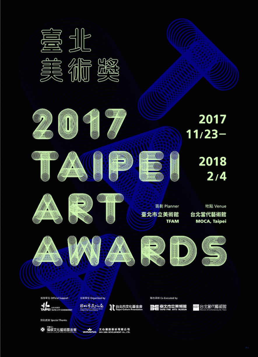 《臺北美術獎》為臺灣當代藝術圈重要且具前瞻性指標的年度競賽展,多年來的累積已成為藝壇新秀展現創作能量的舞台。為鼓勵創作者深化作品內涵、精鍊藝術表現形式,北美館於2010年進行競賽辦法改制,特別提高獎勵金,為全國公辦美展最高額度,並提供首獎獲獎者於北美館舉辦個展的機會。《2017臺北美術獎》將自11月23日至2018年2月4日,假當代藝術館展出13位參賽者作品。