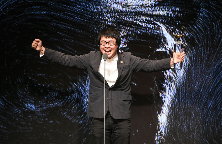 (圖)經濟部工業局局長呂正華頒發金點設計獎幕後英雄獎給Bito甲蟲創意總監劉耕名