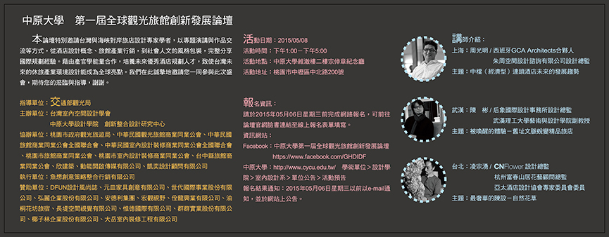主辦單位:台灣室內空間設計學會、中原大學設計學院 創新整合設計中心
