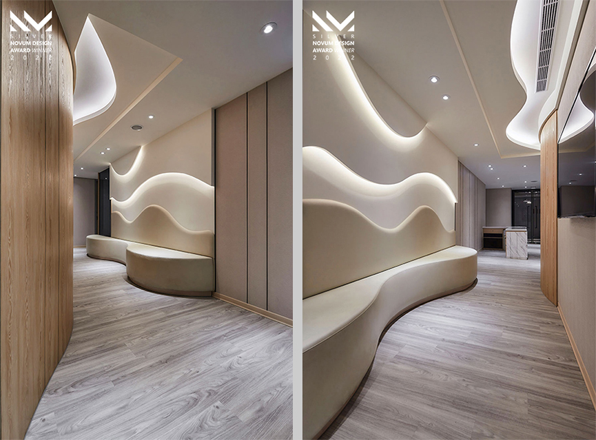 簡兆芝室內設計 簡兆芝 主持設計師,藉由圓滿豐富的線條,勾勒女性孕育生命的身形曲線,打造出澄淨溫暖的生殖醫學中心作品《煦光蘊玉》,並延續長久以來的「平衡」設計理念,精心調和軟裝、硬體的色彩及材質,結合自然天光與人造燈光的映照效果,活化醫療場所的空間氛圍,細膩靈巧的精湛表現,榮獲2022年Novum Design Award銀獎,為品牌佳績再添一筆!