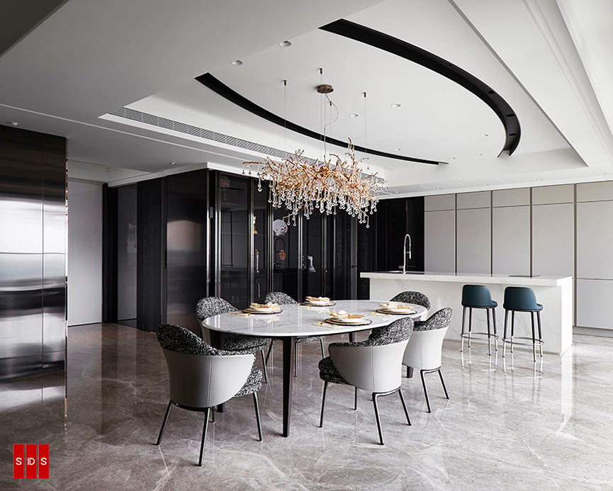 簡兆芝室內設計 簡兆芝 主持設計師 於家宅作品《璞石琢輝》中,以充滿現代感的義大利進口家具為規劃核心,搭佐木質、石材與金屬等素材,透過圓弧線條連貫各場域,於寬廣的宅邸中實踐「空間平衡」的設計理念,獲得 2022 年 SIDA 新加坡設計大獎「銀獎」榮譽,再添品牌榮光!