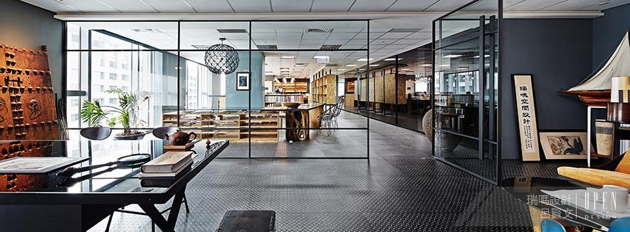 瑞嗎設計辦公室位於府城台南,203坪的空間中,設計師沿襲Loft工業風的水泥灰與純白為色彩主調,並以木質鋪陳,柔和了硬朗冷峻的工業氣息。辦公室內以復古老舊的物件做為裝飾,如帶有中華文化色彩的斑駁木質古門或者象徵中國印象的契茶壺,恰如其分的營造出中國文化的原始復刻風情。