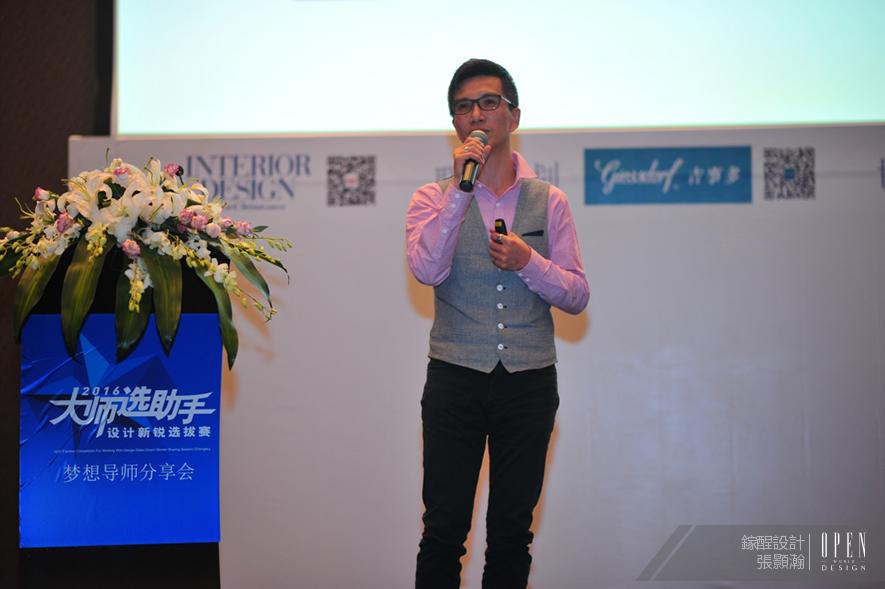 2016第10屆大師選助手設計新銳選拔賽於成都舉辦了夢想導師分享會,擔任夢想導師的鎵酲設計 張顥瀚(逸鈞)在演講時強調,設計最重要的是想像力,根據客戶的不同需求進行調整,並設法讓自己的理念進入客戶的腦子,將設計理念推銷出去,要成為自己的產品經理人。本次受邀擔任夢想導師的張總監,以細膩而近人的設計思維,打破了設計與大眾的藩籬,受到了各界肯定。本次活動包含了兩岸三地的知名設計師與年輕選手,身為夢想導師的他將會如何善用溝通實力,與選手共創佳績,是本次大賽絕不可錯過的精彩焦點。