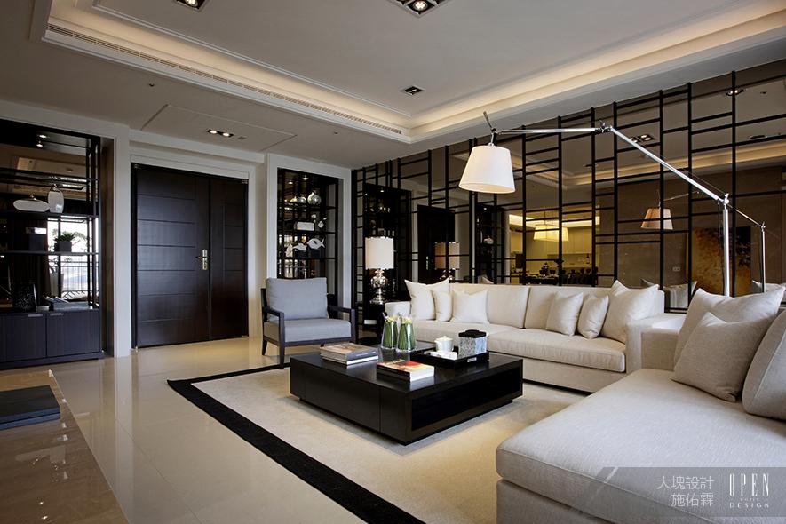 一進門的玄關區不做多餘的區隔,在大門外圍拉出的多層次立體框線,巧妙烘托出兩側對稱精品櫃的精緻,櫃內則背襯茶鏡,可在不同觀賞角度,折射落地窗外四時變化的天色綠意,無形中兼有吸引光線與擴張空間的效果。 開闊而明亮的公共空間,主要涵蓋客廳、餐廳、廚房、休閒書房等四個機能分區,透過簡潔層次的間接照明,帶入落地窗無邊綠意的延伸,將難得的內外 呼應表露無遺。《聯聚建設怡和》