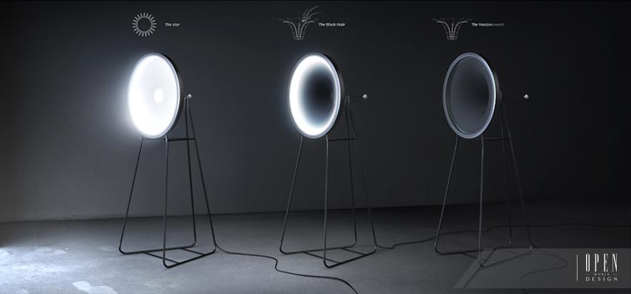 這個由dario narvaez 和 Anthony axter設計和命名的「黑洞燈」,雖然曲線ID燈之前有應用在汽車類照明上,但還是代表這項科技往全新的方向邁進一步。團隊解釋:「『光線完全照射光盤代表生活星星』『把光盤向後拉使光變暗,就像一個恆星垂死的過程,直到燈不再發光恆星完全被黑洞吞噬。』團隊最在意的是用戶使用的過程:燈的中心被解讀為『黑洞』,而把手這是『上帝』的意思。我們想要達到美觀、功能、互動三位一體的效果,用戶會成為設計的一部份,扮演體驗產品的關鍵角色,讓他們覺得自己能夠改變光的力量。」