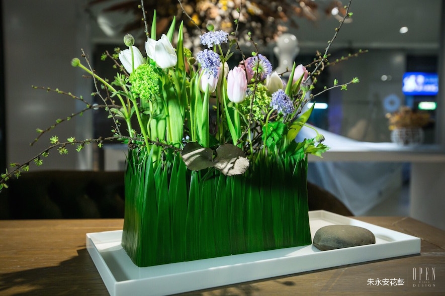 VASE FLOWER 朱永安 老師,無論是在教學,或是在演講,總是不疾不徐,卻充滿了生命力,如同老師本身的花藝作品般,雖是靜態的、溫雅的,卻在空氣之中,流動著生生不息的活力,在小小的作品中,蘊藏著「一沙一世界,一花一天堂」的巨大能量。