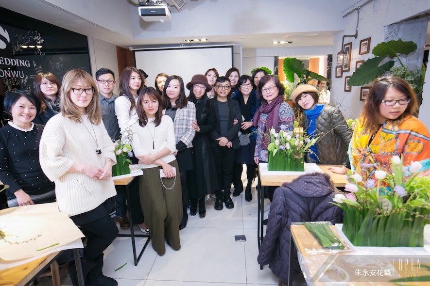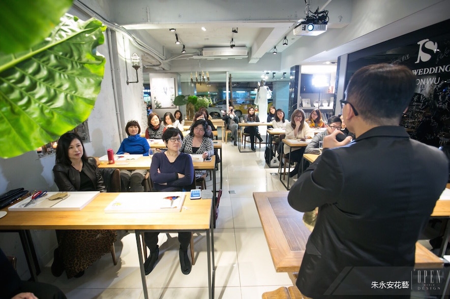 在三小時的課程中,朱老師不僅在現場親自教學,分享兩件作品,更以幽默有趣的語調,帶領著大家體會花藝世界的哲學思維,來幫助我們尋回最真實的自己,找回生活中已快消弭的生活美學。