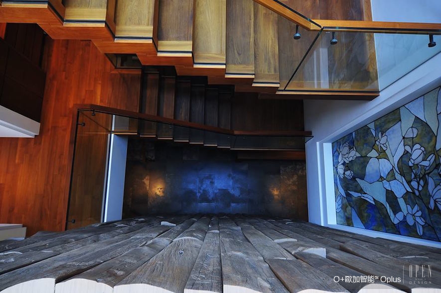 挑高設計的空間頂部搭建透明天窗,使陽光肆意地灑落每個角落,搭配使用O+歐加智能™ Oplus的智能系統,讓自然與科技達到完美的平衡。