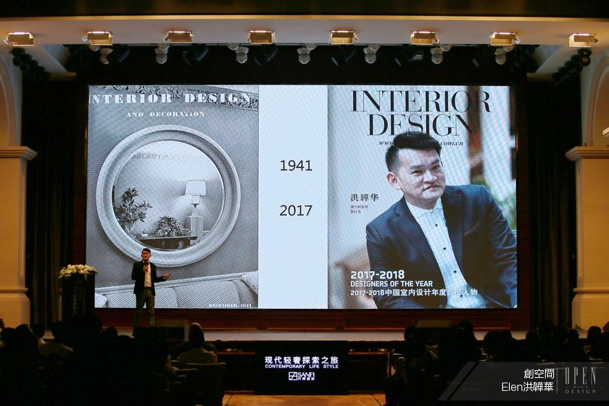在論壇活動中,洪執行長以自己的形象影片作為演說開場,成功活絡了大眾氣氛也讓大家對他有更進一步的認識,剛從激烈徵選中榮獲2017-2018中國室內設計年度封面人物的他,這次的演說不僅僅只是設計案例的分享,更將自己在設計界馳騁多年的心得與台下設計師們共勉,將輕奢的理念與想法內化後細細訴說,極具深度的一席談話,讓人聽完除了在設計上收穫新的想法,也對人生的看法有了不一樣的解讀。