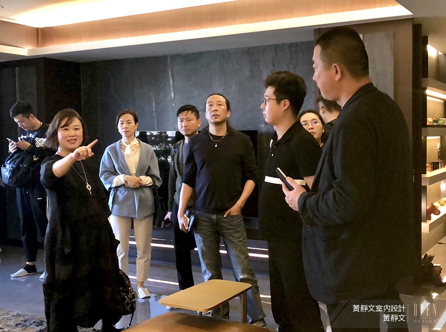 在參觀總監的設計作品《韜光隱山水》過程中,現場的設計師們迫不及待地請教——設計上運用的手法、材質的挑選搭配,及和業主溝通過程中所面臨的問題。總監耐心地聆聽每位提問者的問題,並逐一為大家解惑;詳細的說明及貼近人心的設計理念,也讓在場設計師們抱以專注的神情,並從中獲得全新的設計觀點。