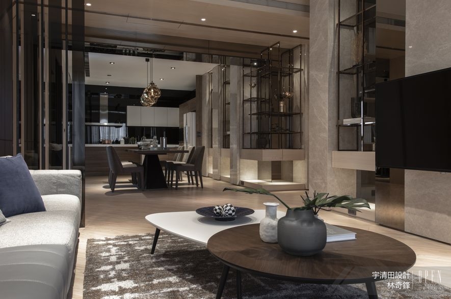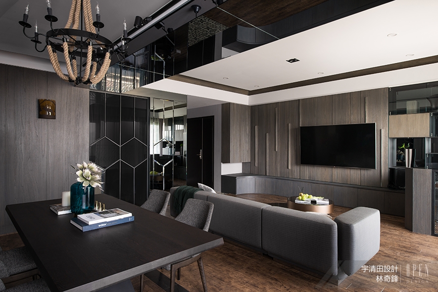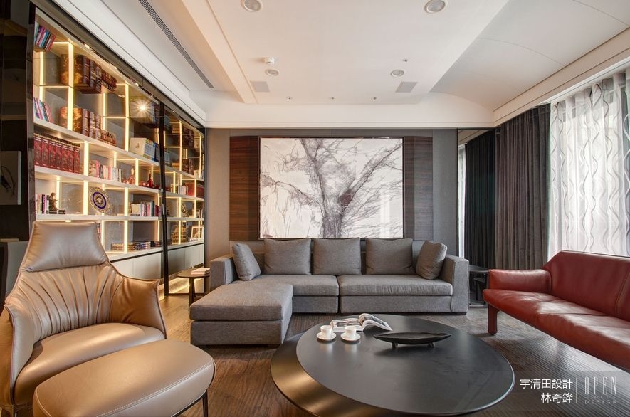 「機能永遠是最重要的!」整場訪談中,林總監不只一次篤定說道。而當他把實際需求結合美感付諸於空間時,無人能從旁協助的苦思是少不了的;其中印象最深的一次,是設計作品《天璽五》的時候。「我在裡面放了很多機關,例如像沙發背牆那幅巨畫,它其實可以降下,因為背後藏了超大螢幕!」總監略顯神氣的口氣,聽得出突破瓶頸的快意;回想當時為了滿足屋主喜愛影視的興趣,同時節省存放空間,意外發現不起眼的書桌零件恰好能派上用場,便完成這個機巧且實用的彈性劃設。