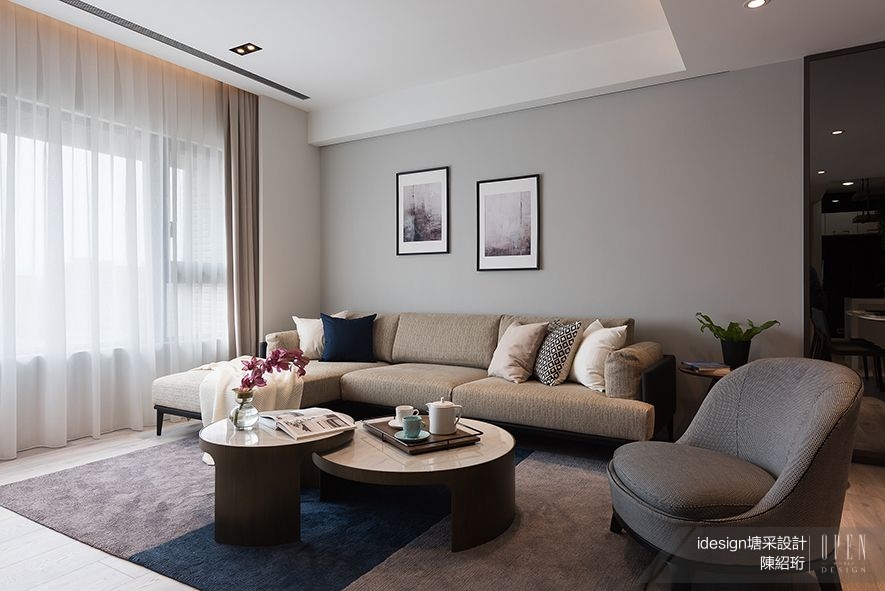 為了創造電影小說文本中的張力與平衡,作家多以二元對立的手法作為相互纏繞的主線,豐富作品的立體度,而在此案中我們亦看見設計師利用相同手法,創造鮮明的住家內涵。推開穩重的門扉,一股窗明几淨的氣息迎面而來;「明」與「暗」作為空間敘事主體,於灑脫與沉穩的色調間,讓視覺力度得到完美制衡。