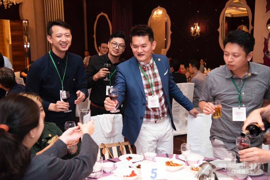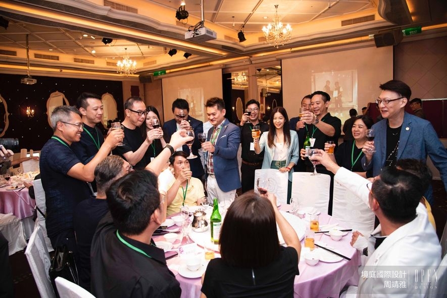 (圖)設計師聚宴現場互動熱絡不已,洪執行長與靖雅總監乘此佳興,舉杯感謝會員盛情支持。