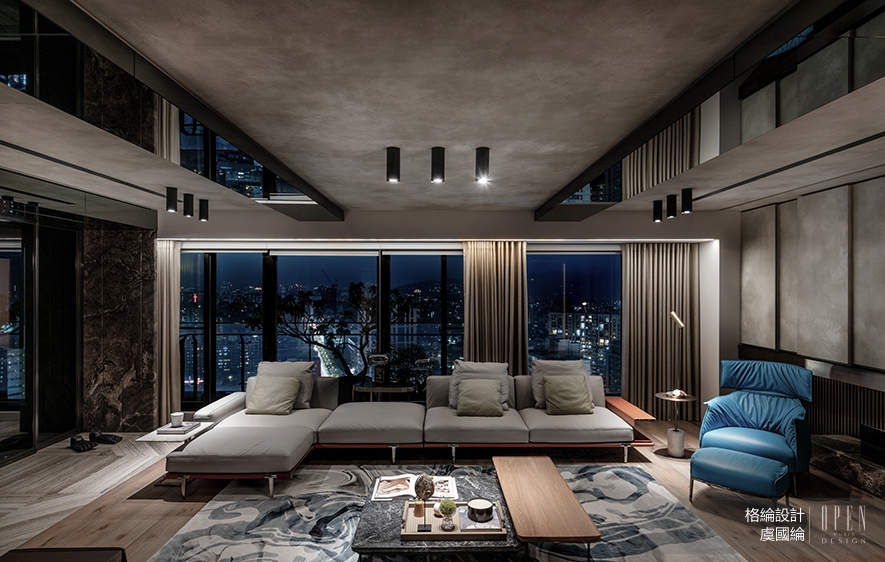 作品《酌綠院落》中力求破除自然與日常間的對立關係,以永續、簡約及溫暖等關鍵字出發,運用低限加工的無毒建材,搭配多項家居智能科技,確保身心及至空間機能皆保有良好狀態。接著以「室內建築」的概念為核心,透過木石質材間的轉換,建立明確的機能分區,同時完穩場域連結;綜合消除封閉隔間的「通透景深」、開放流暢的「情感動線」,導引日照建立多重休憩區塊的「自然交融」等三項設計手法,涵養出一座人文與自然親密共存的新生命宅邸。