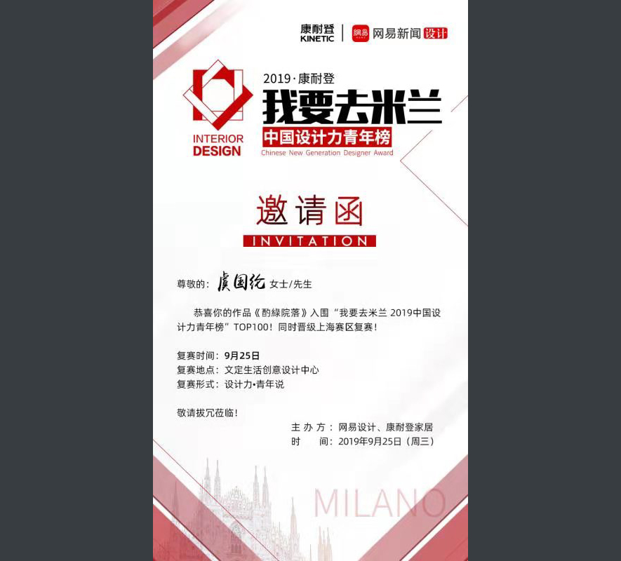 由大陸權威媒體網易新聞所主辦的「中國設計力青年榜」,已行至第四個年頭,作為提供給設計新勢力展現自我的舞臺,賽事連年聚焦於尋找有思考、有態度的實力派設計師。其賽制從初級線上評選至複賽現場演說,最終遴選出各城市的TOP1前往廣州設計週進行決賽,賽後的TOP3獲獎者將在明年4月前進米蘭,於中義論壇交流分享。而今年更加大馬力,贊助方康耐登家居準備了「百萬獎池」,予以才華橫溢的設計師強而有力的後盾,力圖將創新思維輸出至流行殿堂;如此規模盛大且具前沿視野的指標賽事,自然也成為設計圈內極力關注的話題!