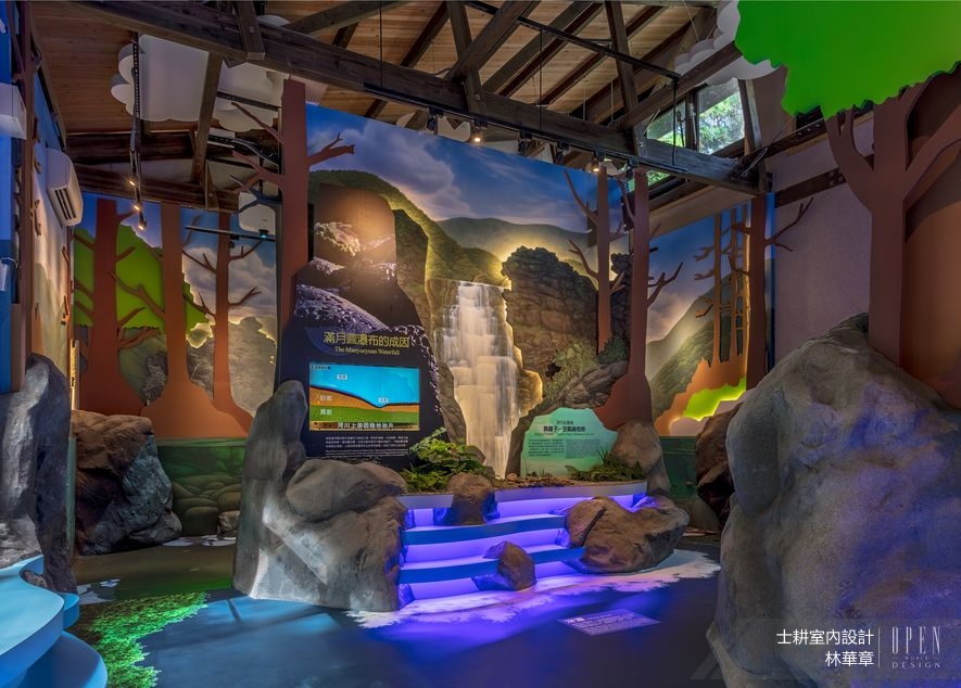 士耕設計 專案主持人 林華章先生 與設計團隊將人造空間還諸自然,展廳中透過大量的仿生物件再造場景,搭載寓教於樂的互動科技與到位的燈光設計,以及無論大人、小孩皆能在這裡輕鬆享受自然生態旅遊的心境,完整表現出滿月圓國家公園遊樂區的三大主軸,並在美感之上,完備展示和教學的雙項重要意義,成為遊人們口耳相傳中,通往美麗景色的不二秘徑 。