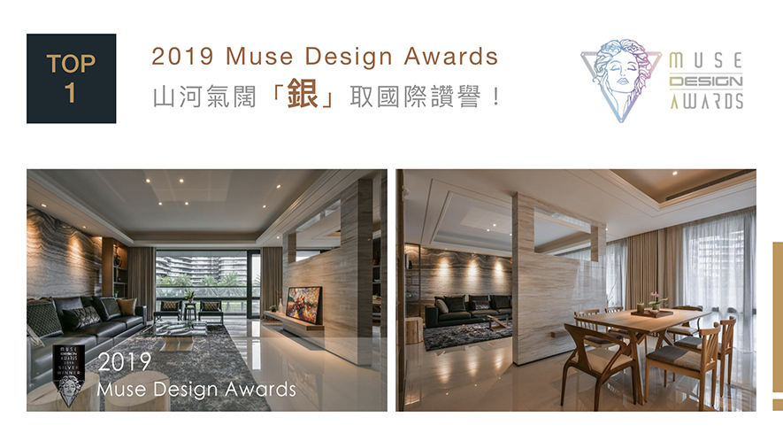 由歷史悠久的國際獎項協會IAA繼承過往豐厚的賽事經驗,拓展而出的首屆Muse Design Awards,共有數千件作品投報。廖總監以呈顯自然共融意念、結合人造場景與地景的《河曲山迎》一路過關斬將,直抵「室內設計住宅類」決選舞台,並在最後不負眾望拿下「銀獎」榮耀!