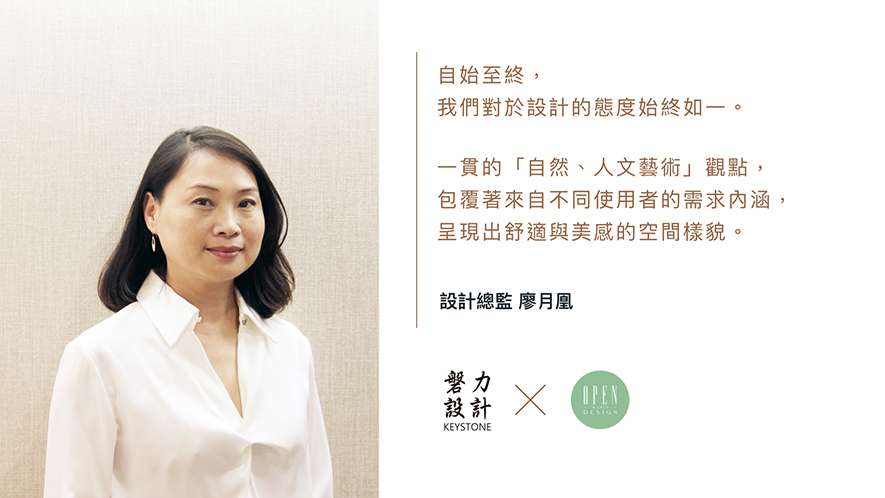 磐力設計 廖月凰 設計總監 曾說,很慶幸自己在純樸濃厚的情感和環境下成長,從廖總監的作品中,可見她將家鄉內化於己的養分,投射到各個場域,並根據換位思考達到業主的需求。走過二十年漫漫長路,總監以一貫的「自然、人文、藝術」觀點包覆不同使用者的需求內涵,樸質設計發光發熱的設計路,依舊未完待續。