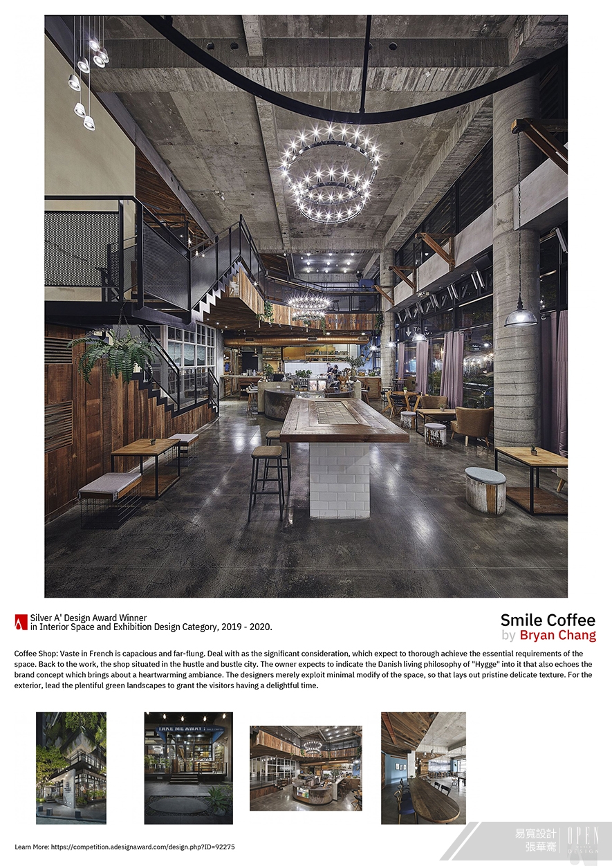 易寬設計 張華騫 設計總監 認為設計是「生活本質」與「美學見地」的總和,他將此理念完美地展現在《SMILE CØFFEE》與《 PUMPKIN HOUSE 》,讓兩件饒富人文溫度之作在A' Design Award中分別獲得銀獎及銅獎,讓品牌再度登上國際、增添光榮!