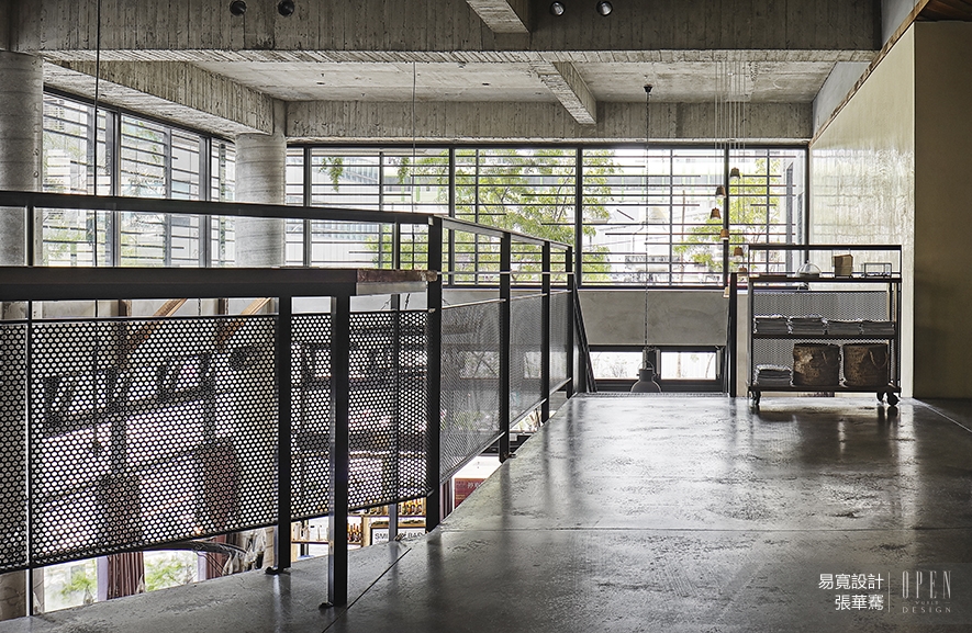 ▲因應基地原有的挑高優勢,在天花板上劃設了挑空形體,利用樓梯串聯三個不同高程的空間,營造出場域間的連結性。