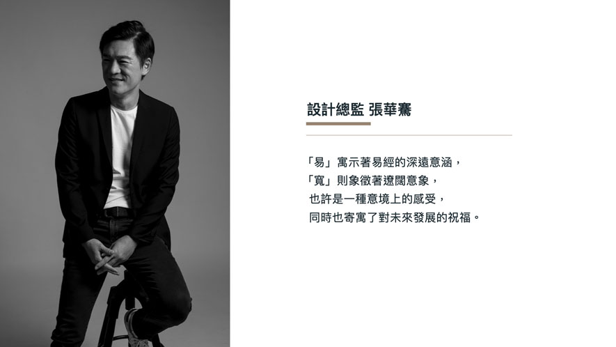 專注反應空間本質,同時也注重細節呈現,易寬設計 張華騫 設計總監 揉合自然光影、色彩材料和實用機能,創造無數令人驚艷的作品,並在國際賽事中屢獲佳績,使品牌增添無限榮光。接下來,讓我們跟隨總監的腳步,一起欣賞「人」與「空間」之間的和諧關係!