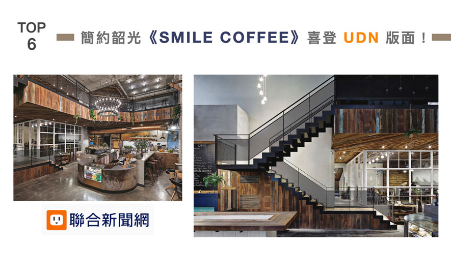 張華騫總監於作品《SMILE COFFEE》中,保留建物的本質,並充分運用水泥木料等原始建材,傳達拒絕過多鋪張浪費,及講求簡約舒適、溫暖樸實的丹麥快樂哲學「hygge」,形成令訪客於都市喧囂中,得以安放日常的溫暖咖啡廳,其樸實舒心之意象,登上「UDN聯合新聞網」版面!