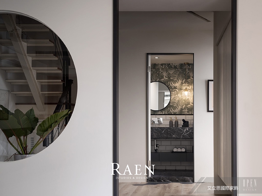 (圖)歸家者於玄關褪去一身疲憊,抬頭一看,隨即透過隔牆的圓窗,望見公領域的美好景緻。