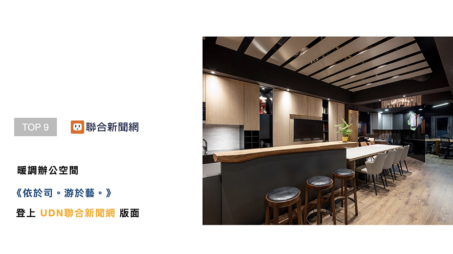 將原為住宅配置的毛胚屋,改造為團隊辦公室,禾森設計透過材料的再生、開放式處理的空間規劃,打造賓至如歸的《依於司。游於藝。》,融合暖色調與新古典風格,創造宜人場域樣貌,魅力登上「UDN聯合新聞網」!