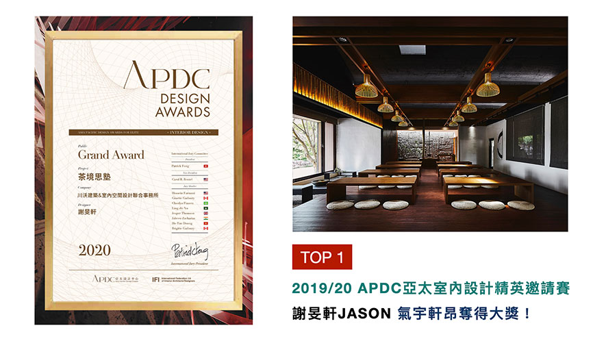 APDC亞太設計中心的核心會員,由全球優秀建築師、室內設計師、產品設計師組成,並創立「亞太室內設計精英邀請賽」。謝總監將人與人之間的信賴呈現於教育場所,劃設出具天然景緻與年代感的作品《茶境思塾》,獲得「公共空間-大獎」榮耀,為品牌增添輝煌佳績!