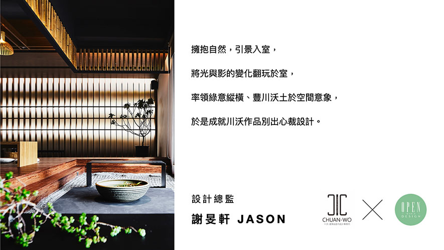 突破建築及室內設計的固有藩籬,川沃設計 謝旻軒 JASON 設計總監 實現與自然和諧共處的願景,同時也不斷超越自我,大膽走向國際,結合各地人文風情,盡情施展獨到的美學巧思。期待未來,謝總監能持續發揮長才,將保有天然風貌和文化底蘊的作品,呈現於世人面前!