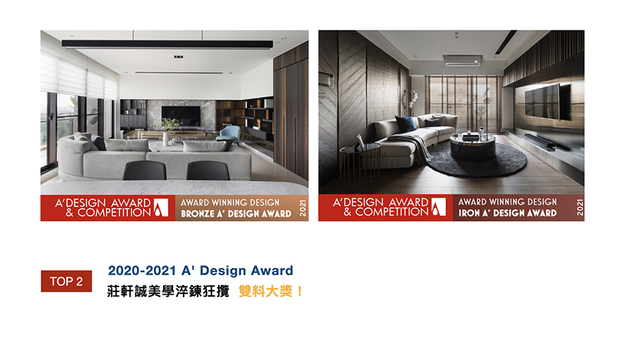 自創立以來,以自然美學、人文設計為品牌宗旨,莊軒誠 設計總監 及俬設計 在每一次的設計作品中,堅持藝術、簡約及品味等五大服務方針,為業主打造出最理想的藍圖,而回首這一年的時間,團隊不僅於國際賽事有亮眼的表現,也深獲各大媒體及各領域業主的肯定,現在就讓我們一同欣賞精彩事蹟吧!