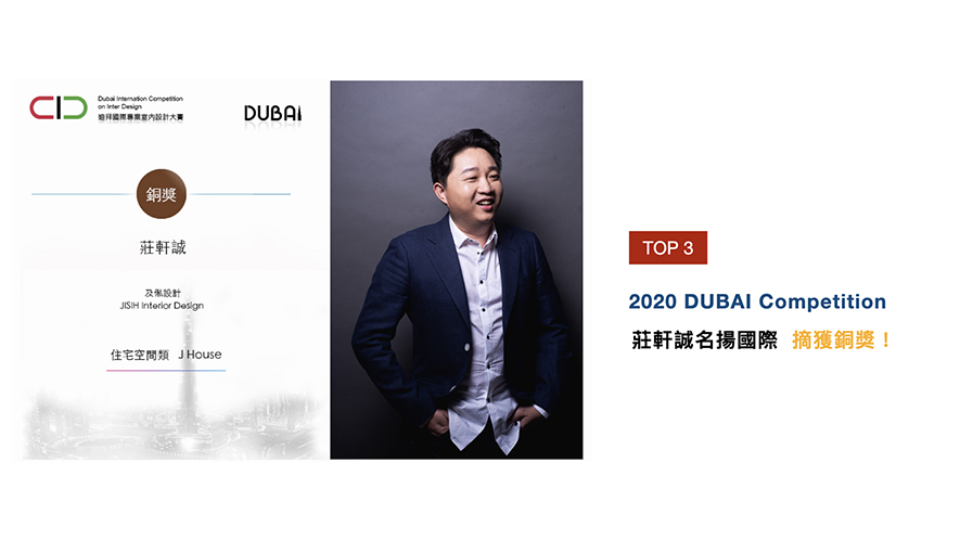 2021義大利A' Design Award有來自108個國家和地區,104個不同的設計領域的參賽者共襄盛舉,爭奪殿堂最高榮耀,莊總監在《沐慕-MU》及《光影-Light & Life》作品中,分別展現材質跟光影的設計手法,並拿下「銅獎」及「鐵獎」! 「杜拜國際專業室內設計大賽」由中華文化促進會,以及中東專業室內設計師協會聯合主辦,並以特色BEST TO BEST大獎,吸引設計師相爭角逐。及俬設計以於作品《J House》中美妙音樂的傳遞,獲得賽事20位評審喜愛,榮獲「銅獎」殊榮!