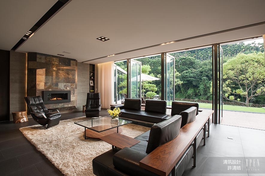 The building lot is situated amid the mountain and the forest. In spite of that, ponder the subtropical climate of Taiwan, we decide to make use of the Low-Emissivity Insulated Glass for setting up the windows and doors, which is not only an energy-efficient green building material but also with heat insulation effect. By way of the large-scale glass and open window design that eliminates the boundary between the outdoor and indoor. We further take advantage of the beautiful nature surrounding, so as to bring out the rustic and elegant temperament of the structure.