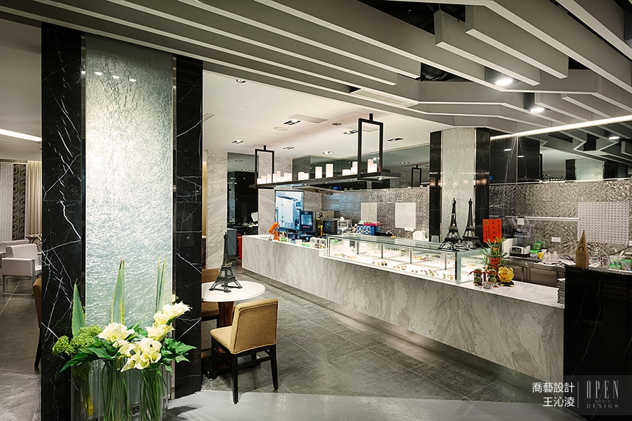 位於台中大遠百的《德爾芙咖啡廳》,自企業形象商標至內部空間設計,皆是出自王總監之手,「發想風格時,我們以時尚之都巴黎的意象為基礎,採用許多俐落的金邊不鏽鋼、灰玻和磁磚,並將德爾芙的logo設計為巴黎鐵塔,使其自然融入場域各處,形塑時髦簡練的現代風範。」巧妙融合商空規劃及品牌特色的設計手法,替此案塑造出高整體性的敞亮浪漫氛圍,開幕至今已吸引不少名媛貴婦前往,成就一間人氣居高不下的網紅咖啡廳。