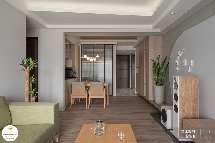 棠禾設計 曾智和 設計總監 考量業主夫妻的安排,巧心規劃兩間孩童房與可親子共讀的開放式書房,並以黑色塗料、金屬與木紋等異材質包覆,創造沉穩細膩的舒適宅邸《捻墨勻鞣》,替未來的溫馨家庭物語鋪寫序章,而另一間家宅作品《柔白蘊寓》則一反前者的深色時尚,將空間視作純白畫布,透過木質筆觸描摹日式無印風格,其間點綴淺色家飾、具律動感的弧線元素,繪成愜意美好的居家風景;運用不同風格展現溫情的兩件創作,雙雙獲得本屆評審團的讚譽,留下「Honorable Mention」的品牌實績!