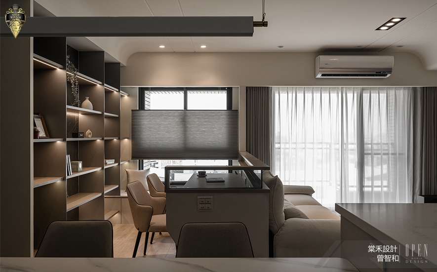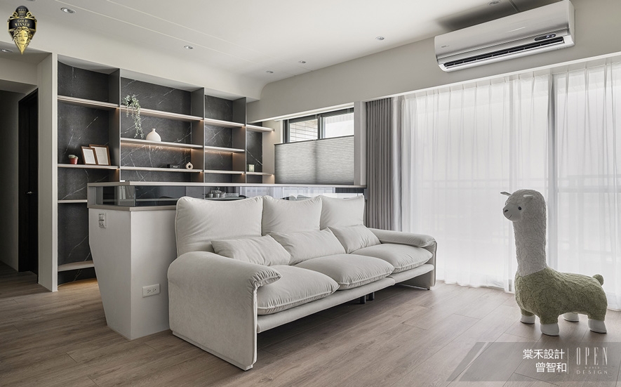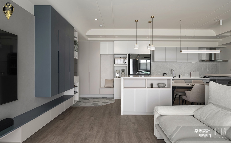 棠禾設計 曾智和 設計總監 為四口之家打造《漫淨》雅居,以「潔淨、俐落、無壓」為作品核心,施作純白、灰色藝術漆鋪陳明淨基調,融合洗鍊線條,呈遞現代簡約風的質感樣貌;舒心宅所《蔚瀾寓所》則以灰、白色系搭配柔霧淺藍,傾流和緩純淨的質調,銜接開放式公領域展顯的廣袤自在,並於天壁橫梁、書櫃等處採用圓弧元素,柔化冷肅建材、營造放鬆氛圍。進行深度設計的兩件作品得到評審肯定,榮獲本屆賽事「金獎」斐績,為品牌寰宇聲名再領輝煌!