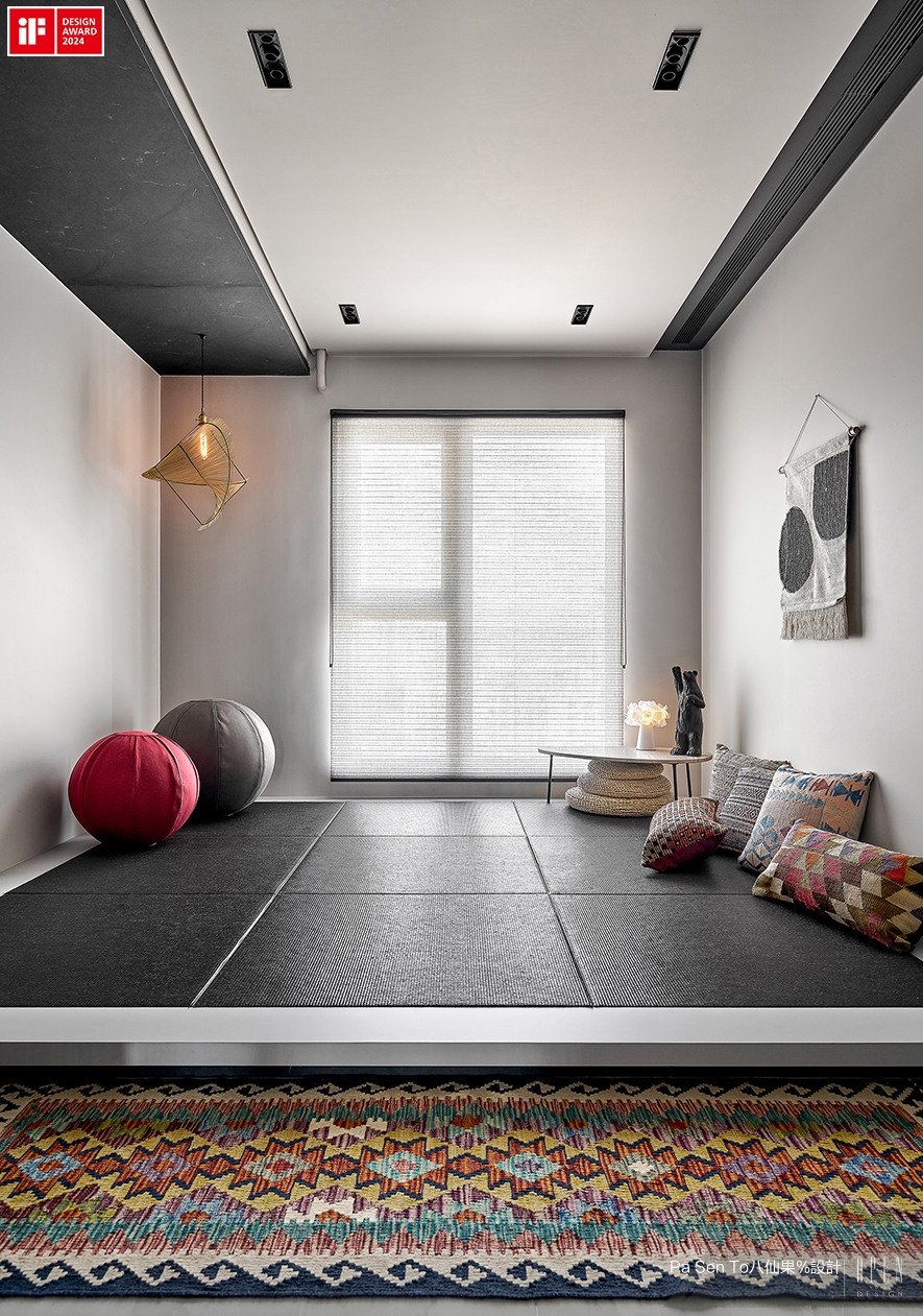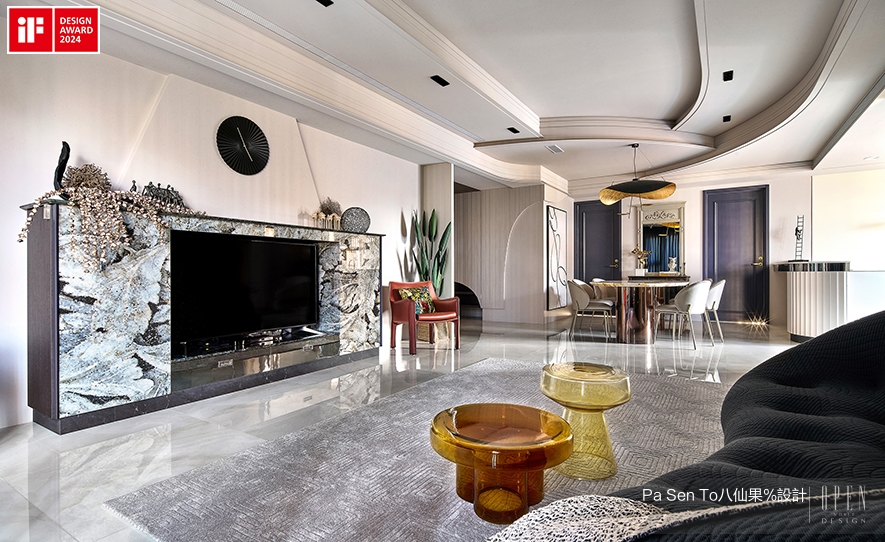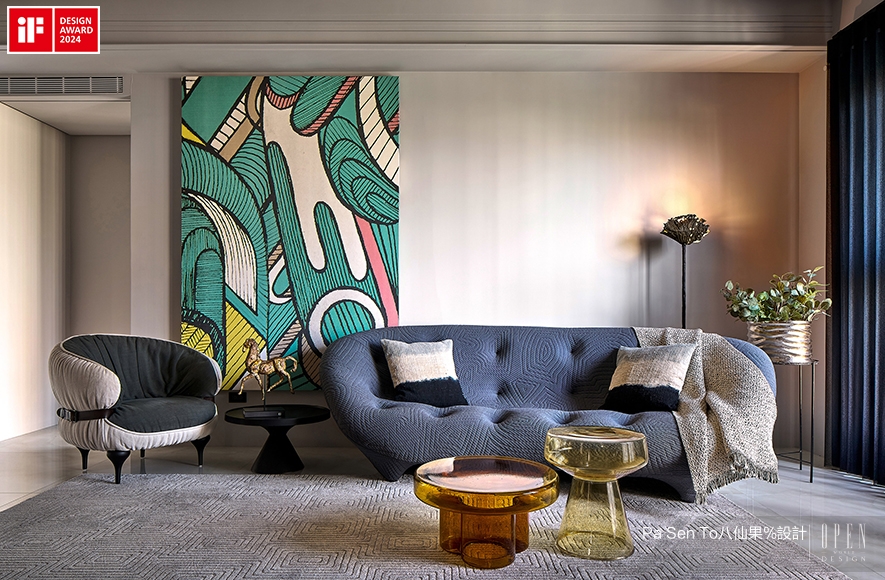 貫徹「以無拘比例勾勒獨特情境」的品牌理念,Pa Sen To八仙果%設計 於公領域鋪陳素雅的米白襯底,令精心選配的現代家具、民族風織品於純淨間和諧交融,綴搭遍布室內的細緻畫作、展品,共築藝韻滿盈的時髦混搭宅《輕漫憶光》,一舉奪得2024德國iF設計大獎Winner肯定,為品牌添獲至上佳績!