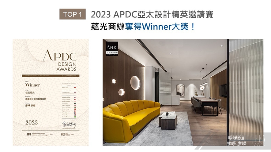 APDC亞太設計中心的核心會員由全球優秀建築師、室內設計師、產品設計師構成,不斷地促進中外設計深入的交流和互動,並將APDC設計大獎推向新的巔峰。崢嶸設計 廖崢 廖嶸 設計師 以海岸原石為核心發想,結合石紋、暗金色美耐板、線燈與簡練線條,打造透出燦金光輝的辦公室作品《樸石蘊光》,榮獲本屆賽事「辦公空間類」Winner大獎!
