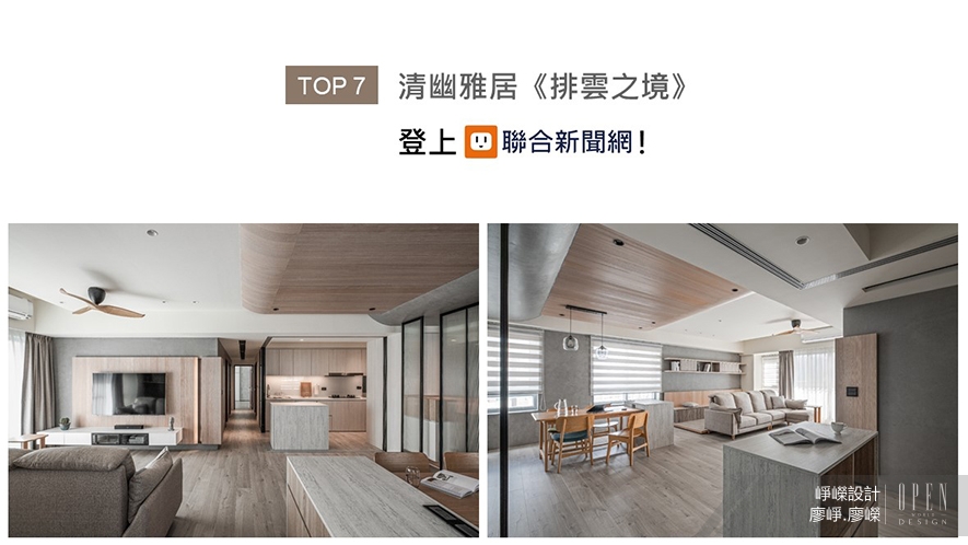 承續擅長的意象式設計,崢嶸設計的兩位設計師將家宅窗外雲氣排開的遼闊場面,透過清水模、實木皮與水泥漆,轉化為室內漸次提升的天壁景緻,詮釋天地相映的舒然風貌,雲霧繚繞般的淡麗之作《排雲之境》獲聯合新聞網鼎力刊登!