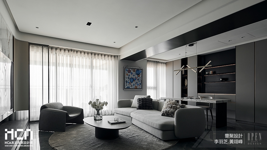 在 設計總監 李羽芝、執行總監 黃翊峰 帶領下,豐聚設計於作品《Gallery 藝境》、《當代御邸Eminence》中,透過極具巧思的設計與縝密規劃,賦予空間全新的生命與美感,其對細節的極致把握,將優雅與實用融為一體,同時巧妙結合智能科技與環保理念,創造出既彰顯個性又滿足多元需求的靈動場域。此次由黃翊峰總監親自代表參賽,藉由團隊的卓越創意、深厚設計功力打動評審,成功躋身本屆「年度城市十大高定家居空間設計師」,成為業界的耀眼標竿!