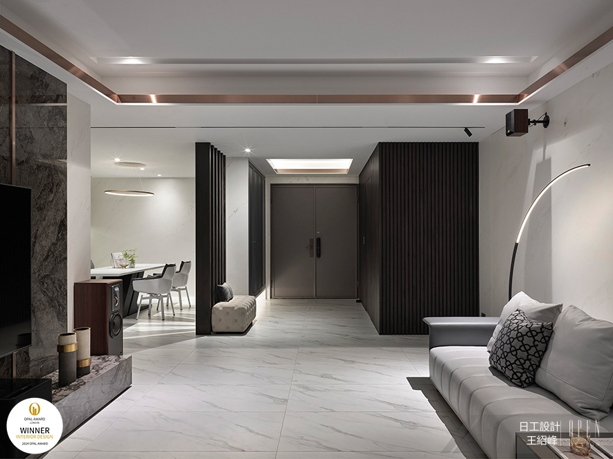 OUTSTANDING PROPERTY AWARD LONDON,OPAL(英國倫敦傑出地產大獎)由全球知名企業集團Farmani Group組織,並以招攬全球最佳建築師、室內設計師與房地產開發商為目標,在創造異業菁英聯合平台的同時,找尋各地最富創造力、革新感、社會影響力與永續性的設計方案。參與者有機會替自己最新穎的企劃,博得國際能見度,並且和產業的先驅及專業人士進行交流。日工設計 設計總監 王紹峰 透過石材紋理、金屬元素與深色木質等材質,平衡男女主人對奢華與簡約的不同偏好,營造沉靜雅致的居家情調《頤居》,斬獲賽事「Winner」榮譽;此外,以深藍色為基底,搭配純白與木調,營造寬廣而沉穩的家居氛圍,並運用鮮明的綠、黃、黑等色彩點綴各個房間,賦予空間鮮明個性的作品《沐海》成功榮獲「Honorable Mention」殊榮,兩大優秀作品使品牌聲望再創新高!