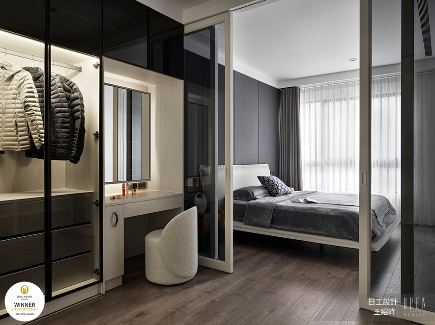 ▲主臥考量屋主夫婦各自的起居習慣,因此將進門處設置為衣帽間,左浴廁、右主臥;以滑門做為隔音層,半夜如廁或早上盥洗時,能不被打擾。