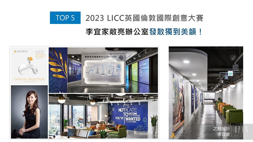 全球指標性設計大獎London International Creative Competition,於2006年開展至今,每年皆引領建築、繪畫、影像等11大創作領域齊步向前。李總監將案場規劃為半開放式格局,形塑敞亮無壓的活動環境,而匯入曲弧元素的造型天花板也無形劃分場域,打造乾淨俐落的清新辦公室《Synergy》,贏獲此屆賽事「Official Selection」榮耀!