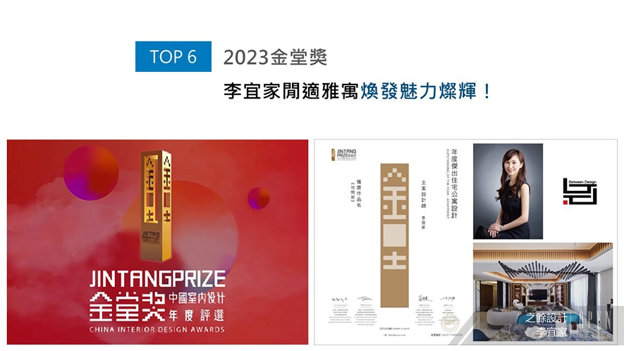 金堂獎致力推動「設計創造價值」的主題,為華人設計產業界最具影響力的盛事之一。之餘團隊於度假宅《悅閑居》中重劃公區格局,以半高櫃體取代隔間牆,打造視界通透的開放式書房,另設置東方風情泡茶區、高品質影音室及遊戲室,滿足屋主閒暇時的各式雅趣;機能設計深受評審團讚許,榮獲「年度傑出住宅公寓設計」、「2023年度城市十佳」的非凡榮譽!