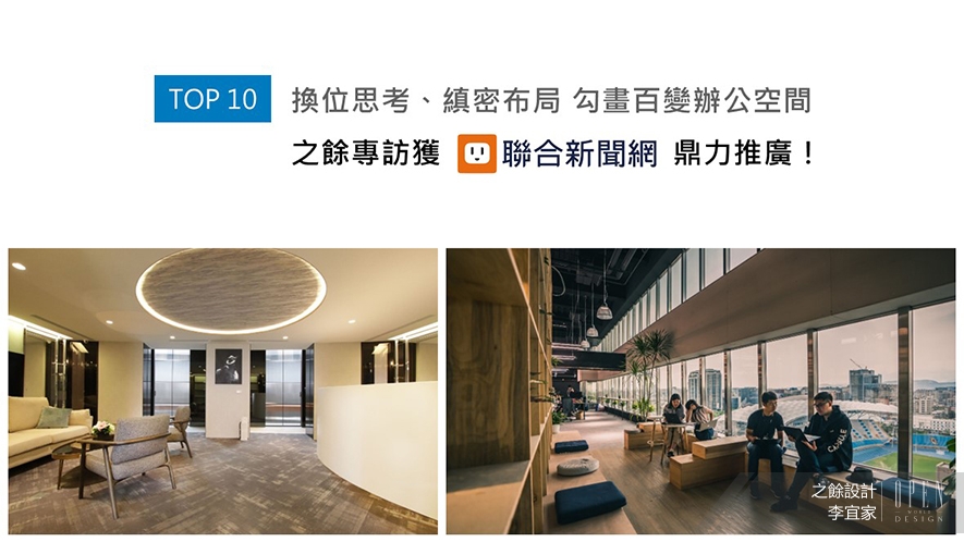 之餘設計團隊自創辦以來,藉迅速到位而不失細膩的全面服務,一步步於業界積累優良名聲,本次專訪,他們便大方分享公司始創時期,李宜家總監及旗下設計師們發生的背後秘辛,更細述經營至今的心路歷程,以及品牌樹立「商辦行家」鮮明形象的精采故事,豐富的訪談內容獲得聯合新聞網刊載!